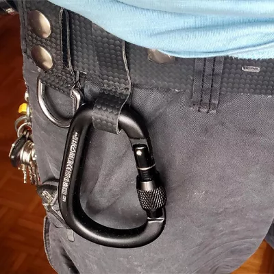 Sleeve locks on biner’s gate (not nose) and won’t bind up when loaded