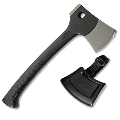 Small, convenient and multi-purpose. This small Camp Axe comes with a convenient sheath to keep the blade protected and the back of the axe works well for pounding in stakes at the campsite. Length 8 1/2″ closed.
