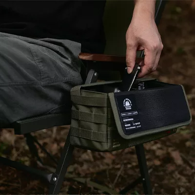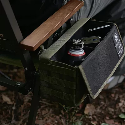 The Side Storage Bag features a Cargo Container self-developed webbing hook that can be horizontally attached to the rear side, along with vertical snap buttons and Germany’s ‘FIDLOCK’ buckle, allowing it to be easily attached to products with webbing, such as chairs and tables, anywhere. It is designed with agenerous size (290x115x125mm) that can accommodate 355ml cans standingupright and includes dividers for user convenience. With a lightweight design of400g, it can be effortlessly carried without any burden.