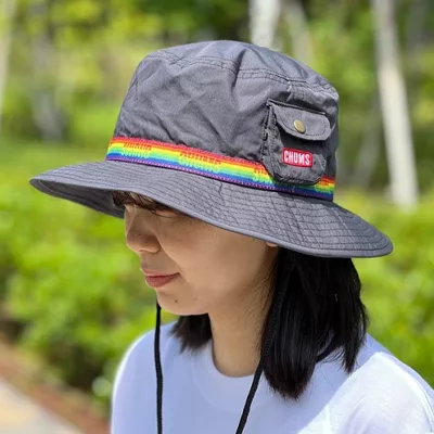 A classic CHUMS hat that is popular for its design and functionality that fits the outdoor style. The inside is made of mesh material, which is breathable and comfortable to wear. The chin strap with drawstring is removable. Each color is accented with a different Tyrolean tape. The side has a mini pocket that can be used as a coin pocket, making it perfect for active scenes such as festivals.