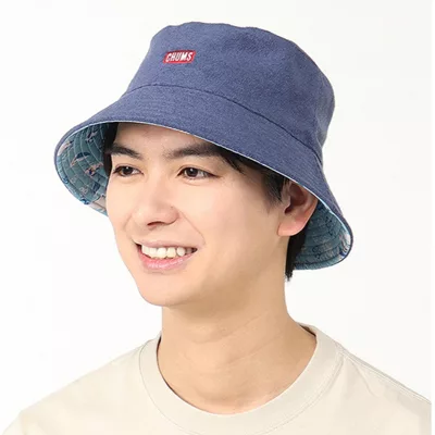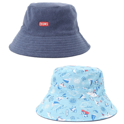 A reversible hat with a simple plain side and a CHUMS-like all-over pattern that can be used according to your mood and outfit.