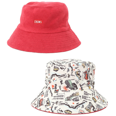 A reversible hat with a simple plain side and a CHUMS-like all-over pattern that can be used according to your mood and outfit.