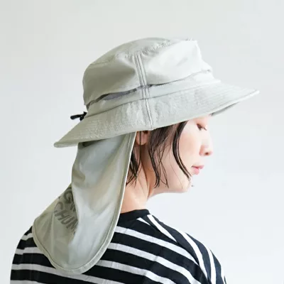 A hat with sunshade that covers the back of the neck and is useful for all active scenes such as hiking and running.