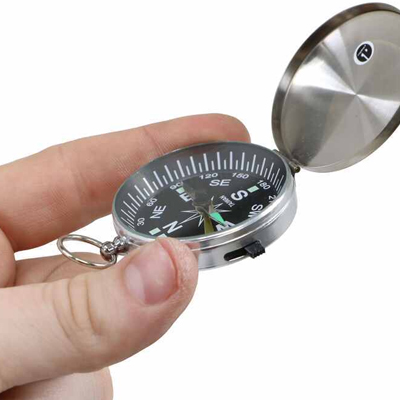 Jewelled needle with a positive stop lock, non-glare black luminous dial and a chromed metal case.