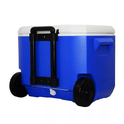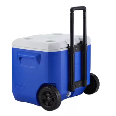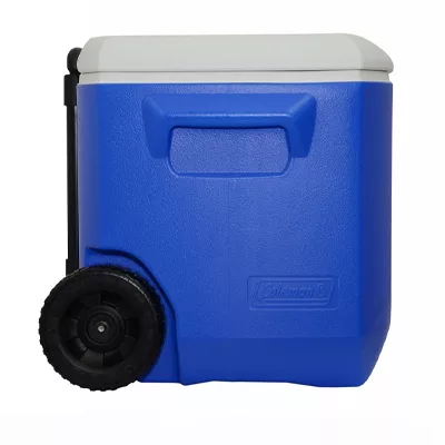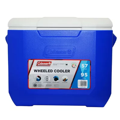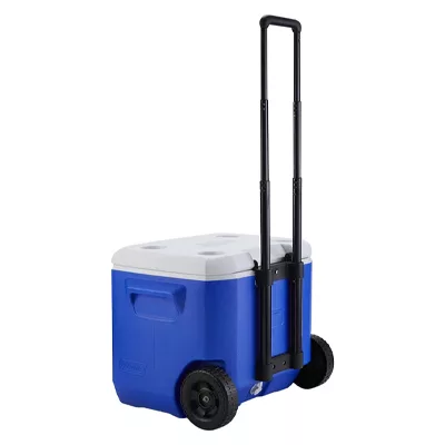 Wheel the new, stylish convenience of a Coleman® 60 Quart Wheeled Cooler with you to the party—at the BBQ, sports event or campsite. While your friends revel in the sleek new look, you’ll enjoy the added improvements that better fit your lifestyle where portability comes in so handy to carry loads of chilled goodies for the occasion. The redesigned 60-quart cooler is tall enough to hold 1.5 liter bottles upright and large enough to hold up to 95 cans. Four molded cup holders help prevent spills, and the Have-A-Seat™ Lid supports up to 113.4 kg so you’ll always have a place to sit and rest. Heavy-duty wheels offer all-terrain transports and a long telescoping handle makes pulling the cooler more comfortable. When the fun is done, the retextured EZ-Clean top makes washing your cooler on wheels simple.