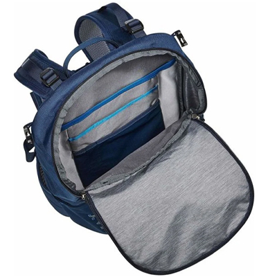 Deuter GoGo jade-deepsea Our sporty daypack with comfortable Airstripes back system benefits from reduced contact surface and ergonomic shoulder straps for optimized ventilation. A large zip around opening offers quick access to the main compartment, while a zippered pocket, valuables pocket, and a document compartment, plus two stuff pockets at the sides and a bungee cord on the front work together to keep contents neatly organized. This bluesign® product uses body fabric made of 100% recycled materials with components made using environmentally friendly, resource-efficient manufacturing practices. It meets the Green Button standard, is climate neutral, and PFC free. Features: Airstripes System Adjustable sternum belt Stretch side pockets Inside compartment to keep your valuables safe Document compartment Key clip ergonomically padded shoulder straps PFAS free ClimatePartner certified product Green Button certified product bluesign® product 100% recycled PET material Material: 600D PES REC BS 150D PES bluesign® certified Weight: 570 g Volume: 25 liters Dimensions: 46 / 27 / 19 (L x W x D) cm Recommended load: 3 – 6 kg Back length: 38-54 cm Body height: 158-195 cm
