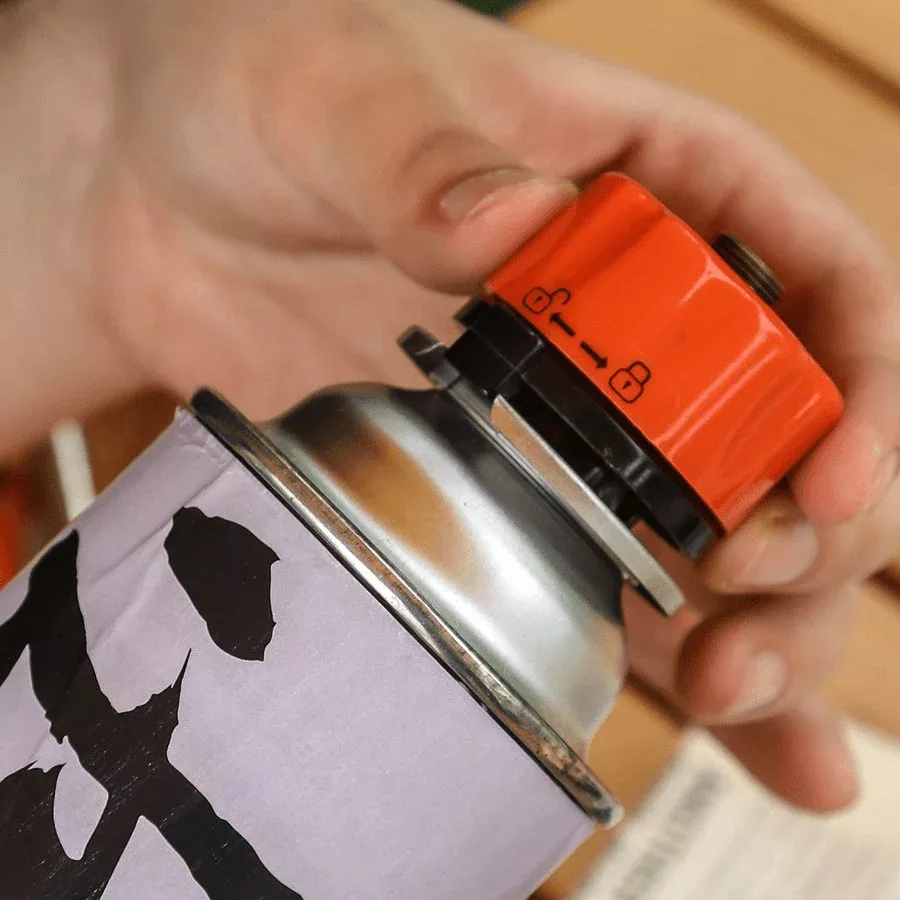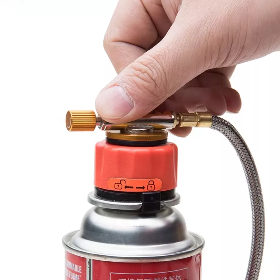 Connect the adapter onto the valve of the gas lantern. Then connect to a 1 lb. can or post. Control the nozzle for gas pressure.