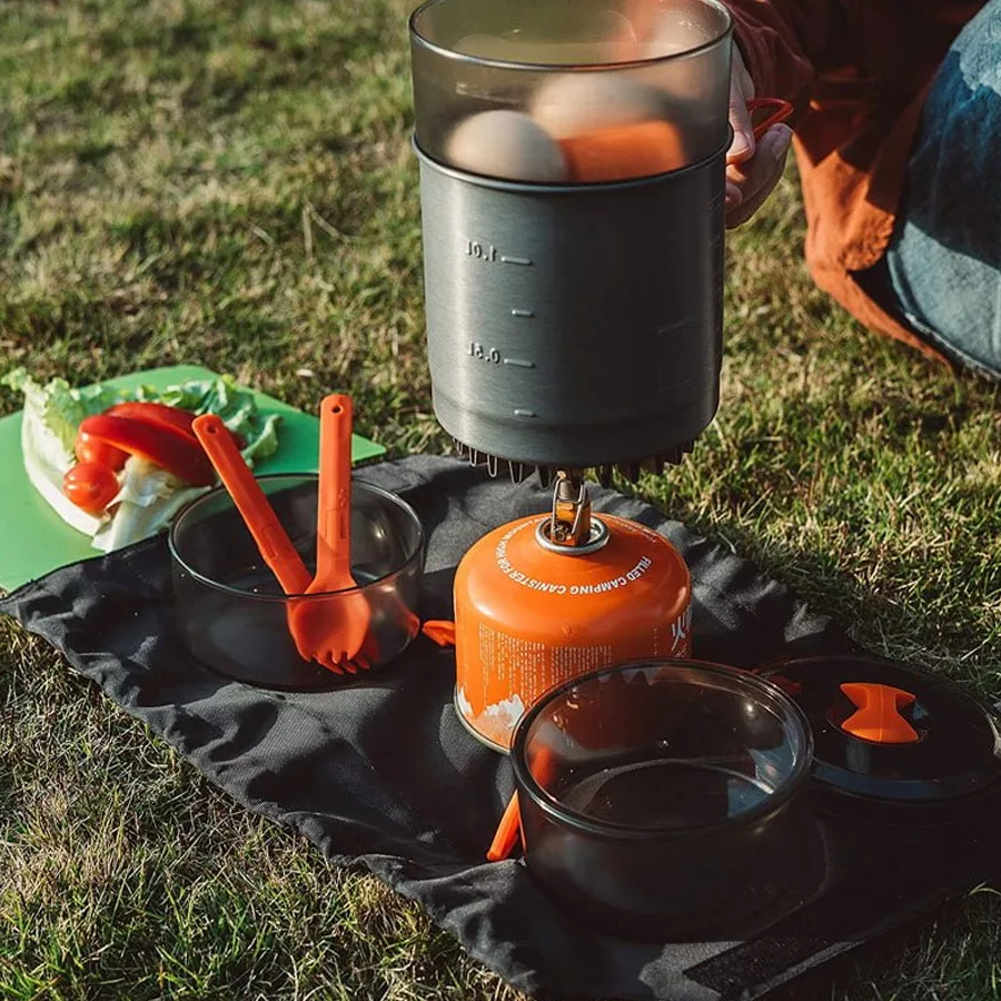 When used with a Fire-Maple Canister Stove, the cooking experience is enjoyable, fast, and easy. When you’ve finished up and ready to make a move, the entire unit packs up neatly inside its nylon carrying pouch. The cutting board mat even slips inside the pouch providing an extra level of protection.