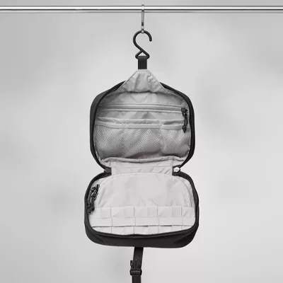 Necessity Bag with numerous compartments and sleeves to help keep your gear organised. Made from hardwearing recycled polyamide with TPE laminate and lined in recycled polyamide with PU coating. Lightly padded to protect contents. Clever design with a strap that doubles as a handle plus a hanger hook inside. Inside you will find two zippered pockets, an open sleeve pocket, three mesh sleeves and elastic loops perfect for a toothbrush, makeup or pens. Färden Necessity Bag is a must when travelling.