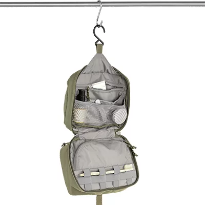 Necessity Bag with numerous compartments and sleeves to help keep your gear organised. Made from hardwearing recycled polyamide with TPE laminate and lined in recycled polyamide with PU coating. Lightly padded to protect contents. Clever design with a strap that doubles as a handle plus a hanger hook inside. Inside you will find two zippered pockets, an open sleeve pocket, three mesh sleeves and elastic loops perfect for a toothbrush, makeup or pens. Färden Necessity Bag is a must when travelling.