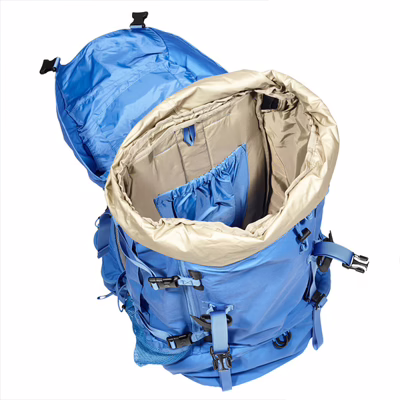 Equipment features: Holder for ice axe or hiking poles, Expandable side pocket, Side compression straps