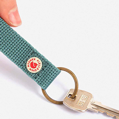 Practical keyring with a loop of the webbing used for Kånken straps. Produced without PFCs, made for a lifetime of use.