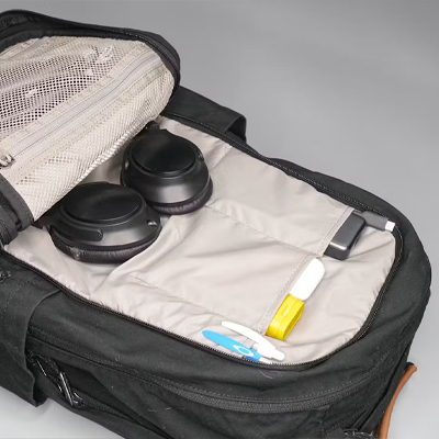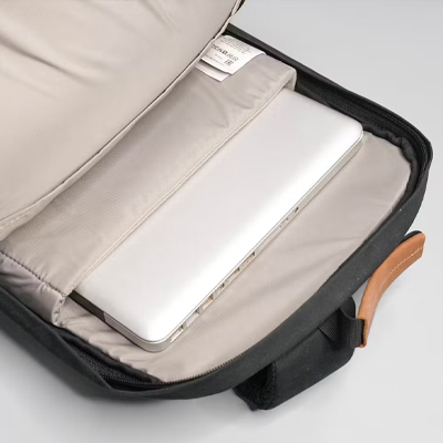 Zippered main compartment with padded sleeve for laptops up to 15″.