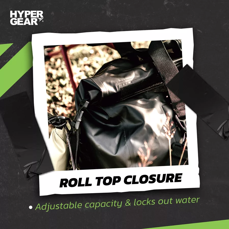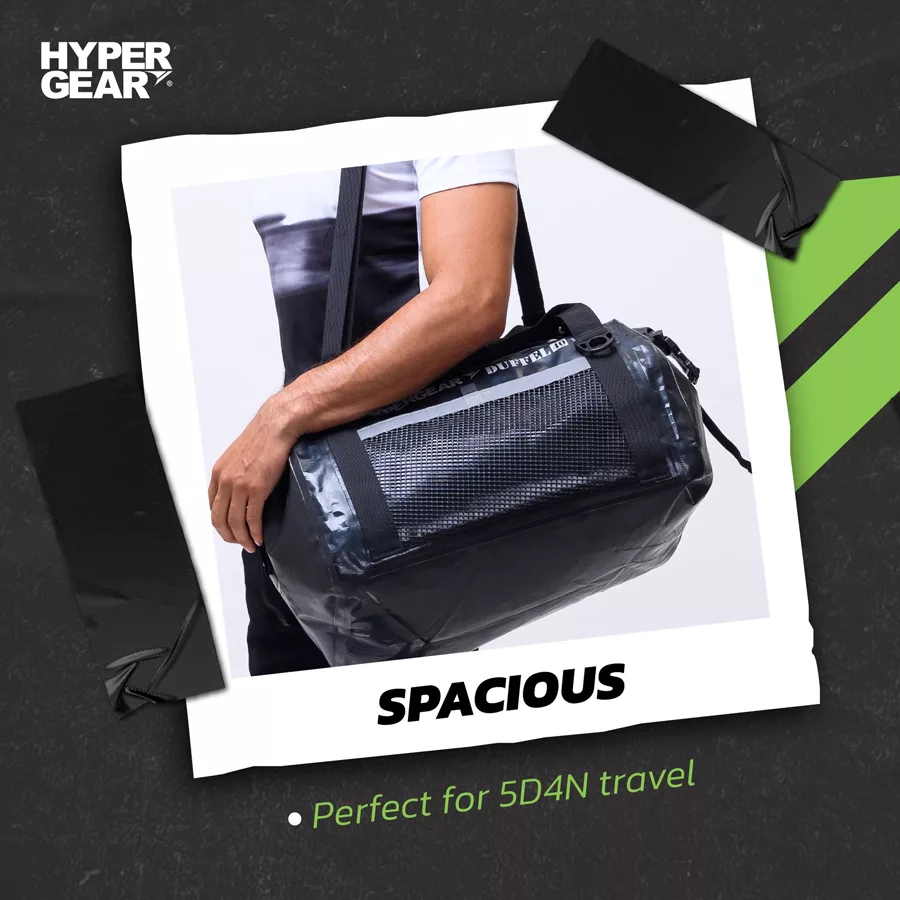 Hypergear duffel bag provides a spacious waterproof storage solution for your traveling needs. The duffel bag is constructed to provide heavy duty and long term storage.