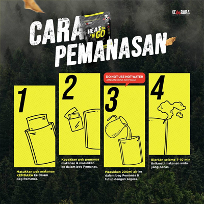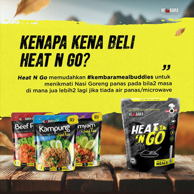 Introducing Heat N Go, the revolutionary new product from KEMBARA MEALS! Designed specifically for adventurers and travel enthusiasts, this cutting-edge warmer bag transcends the ordinary, providing a hassle-free way to heat up KEMBARA LITE favorites like Kampung Fried Rice, Beef Paprik Fried Rice, and Chicken Tomyam Fried Rice—no hot water or microwave needed. Equipped with a state-of-the-art food warmer, Heat N Go lets you savor piping hot fried rice using just about any liquid, bringing gourmet comfort food to your fingertips, wherever your journey takes you. Experience the freedom to dine deliciously, anytime, anywhere!