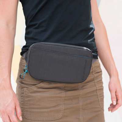 Made from an abrasion resistant woven nylon fabric with PU coating and water resistant zip, the belt pouch is durable, lightweight and element resistant. The travel belt pouch shields the contents from radio frequency identification (RFiD) readers by stopping the information being transmitted through the nickel and copper coated polyester fabric, reducing the risk of identity theft.