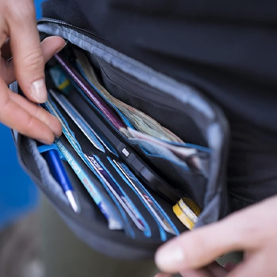 The RFiD travel belt pouch is perfect for organising your travel documents when you’re on the move. The belt is detachable so you can stow it away when you don’t need it. Featuring 5 card pockets, 5 slip pockets for notes and tickets and one internal zipped pocket, it’s perfect for keeping paperwork organised.