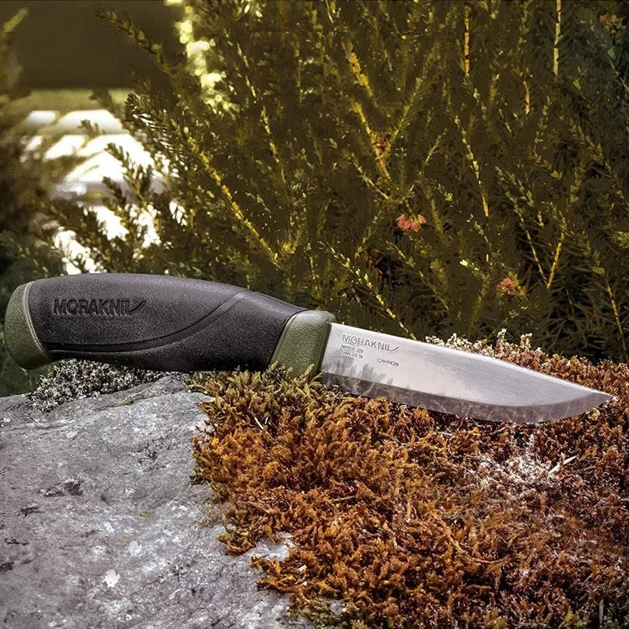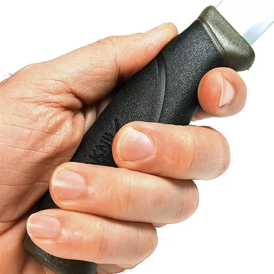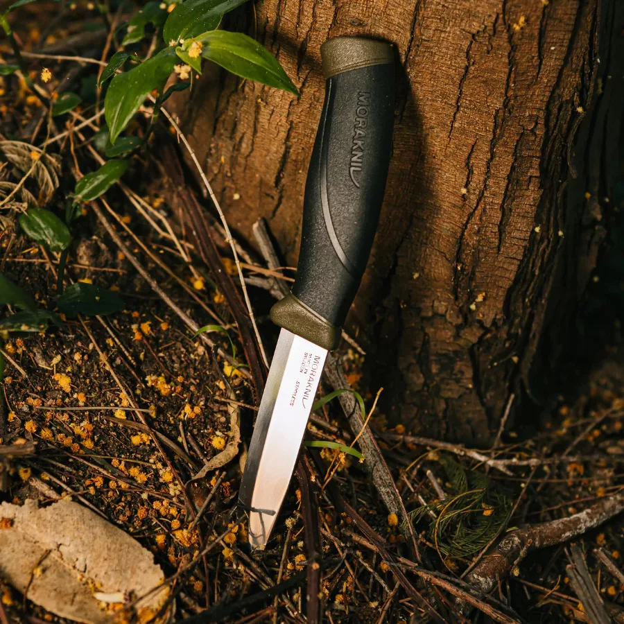 Companion is the perfect knife for an adventure, a real all-round knife. The tang runs three-quarters of the way up the knife, so that you can work with power and precision. The blade is made of stainless steel which makes knife care extra easy. The soft friction grip is made of TPE rubber, making the knife feel secure and steady to work with. The polymer knife sheath includes a practical belt clip so that the knife can be attached to your rucksack or belt – always close at hand.