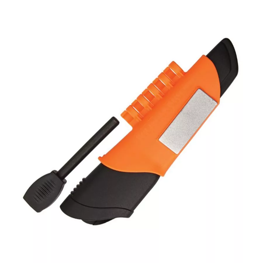 A sharp blade with a defined tip, integrated fire starter, and diamond sharpener make Bushcraft Survival the ultimate bushcraft knife. The 3.2 mm thick blade in stainless steel and has a spine that has been specially ground so that it can be used with the fire starter.