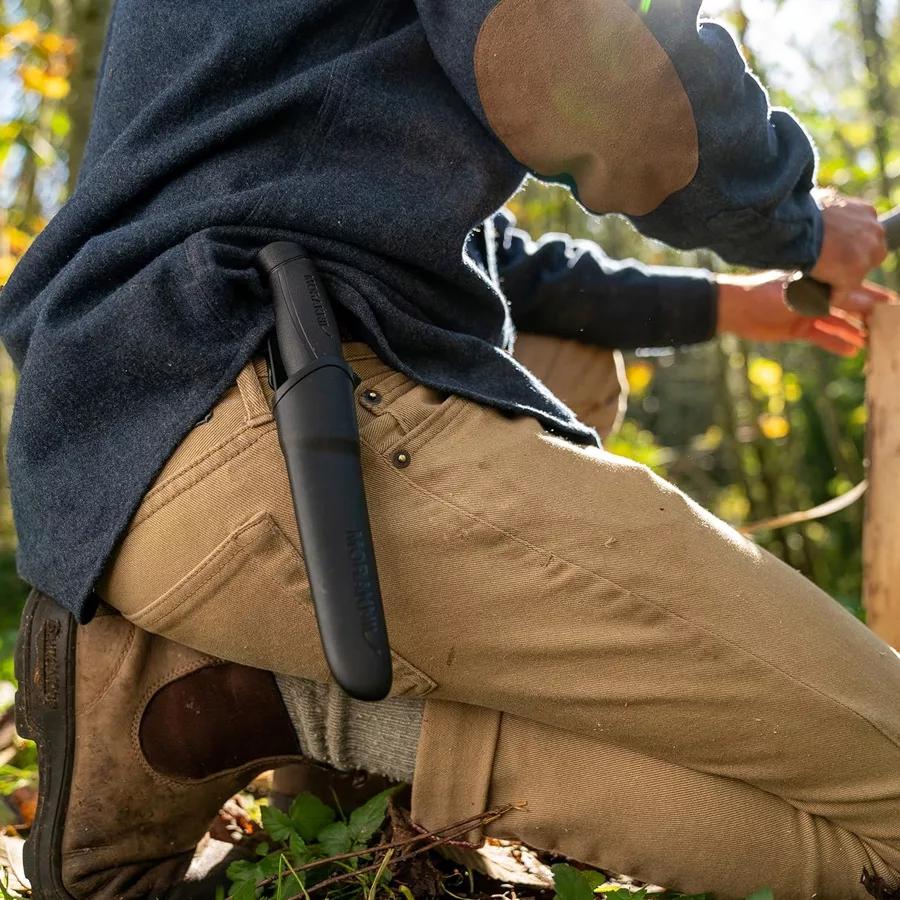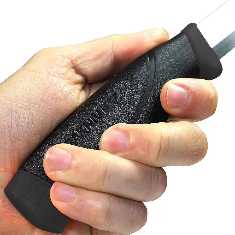 Companion is the perfect knife for an adventure, a real all-round knife. The tang runs three-quarters of the way up the knife, so that you can work with power and precision. The blade is made of stainless steel which makes knife care extra easy. The soft friction grip is made of TPE rubber, making the knife feel secure and steady to work with. The polymer knife sheath includes a practical belt clip so that the knife can be attached to your rucksack or belt – always close at hand.