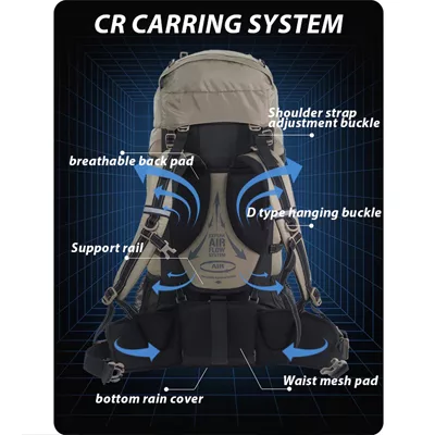 Large Capacity: With a spacious main compartment, the backpack offers approximately 70L of storage, perfect for extended trips.