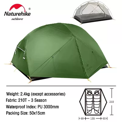 Naturehike Mongar Ultralight 2 Man Tent 210T forest green