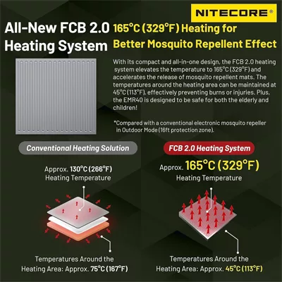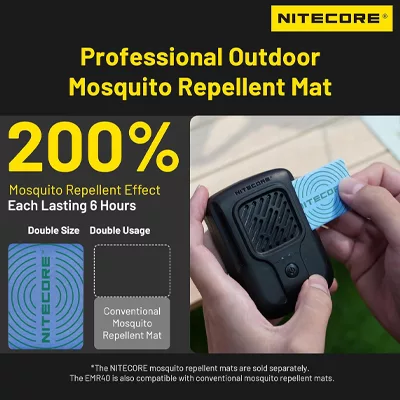 The Nitecore EMR40 is an excellent choice for outdoor enthusiasts and gardeners looking for a lightweight, portable mosquito repeller. It creates a comfortable pest-free zone in an area of up to 16 ft radius outdoors and 11 ft indoors. With its updated efficient heating system, the EMR40 accelerates the release of the mosquito repeller mats making it 200% more effective. The EMR40 accepts readily available blue pyrethroid-based pads, eliminating the need for messy liquid refills and fire hazards. Weighing at about 8 oz, the EMR40 comes with a clip that can attach to bags and MOLLE straps for hands-free protection.