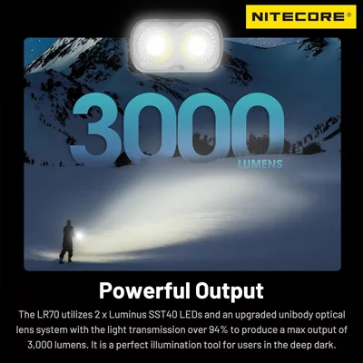 Flashlight Mode: Utilizes 2 x Luminus SST40 LEDs with a max output of 3,000 lumens