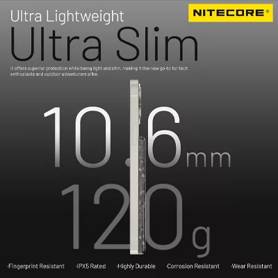 Weighing only 120g, it boasts an ultra-slim body with a forged carbon fiber shell, making it perfect for everyday use or rugged outdoor environments like hiking or camping. Additionally, it holds an IPX5 water-resistant rating and provides safeguards against short-circuits, overcharging, over-discharging, overheating, and more, making it an excellent companion for any journey.