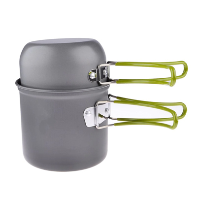 This cooking set is made with aluminum alloy, surface oxidation (hard anodized), rustless and is very strong and is not easily broken, small, light weight, especially suitable for use in the field camps.