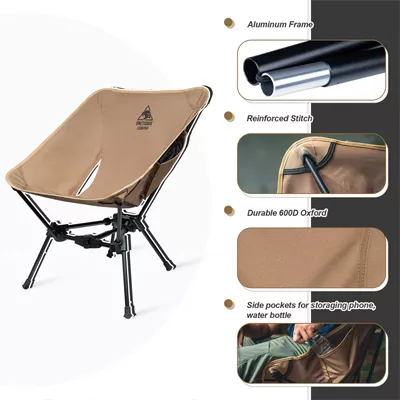 An essential item for the outdoors that’s easy to piece together, quick to dismantle, and highly lightweight for efficient carry. Most camping chairs end up with bent frames after several trips, but this one features the most solid triangular structure with a central linkage pole to create a base of 2 single triangular, combined with the Aircraft Grade Aluminum builds the super rigid body to withstand up to 330lb (150kg) in weight; it’s available in coyote brown for those who want something low-key and more budget friendly.
