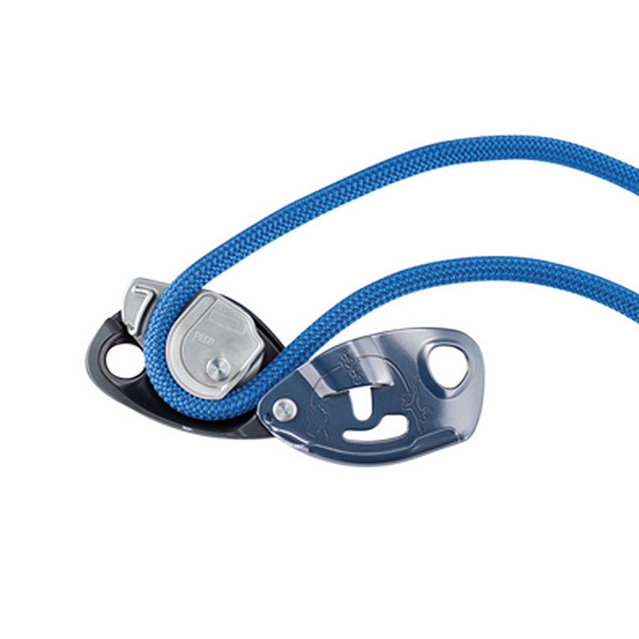– belaying convenience, thanks to assisted braking: when a climber falls, the device pivots on the carabiner, the rope tightens and the cam pinches and brakes the rope. Holding the brake side of the rope helps engage the cam; therefore, it is important to always hold the brake side of the rope