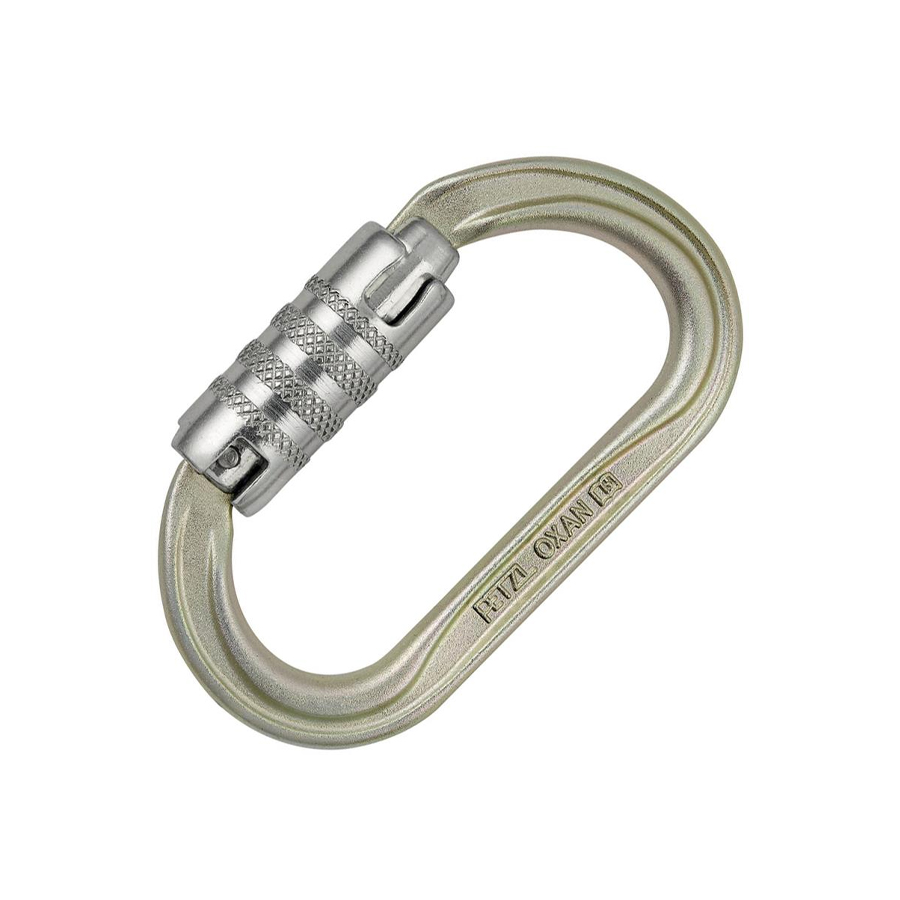 OXAN is a high-strength steel carabiner designed for use in difficult environments. The oval, symmetrical shape allows optimal loading of the carabiner when setting up anchors or connecting to metal structures. It is available in two locking systems: automatic TRIACT-LOCK system or manual SCREW-LOCK system. OXAN TRIACT-LOCK is available in European or international versions. OXAN can be connected to the CAPTIV bar to favor positioning of the carabiner along the major axis, to limit the risk of it flipping and to keep it integrated with the device.