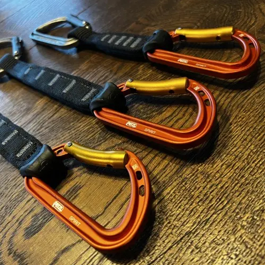 Lightweight and ergonomic, the SPIRIT EXPRESS quickdraw is THE benchmark for sport climbing and working a route. The straight gate design offers an excellent grip and makes clipping and unclipping easier thanks to its textured gate and Keylock system. The design of the bent gate allows the rope to be clipped efficiently. The ergonomic shape of EXPRESS quickdraw sling makes it easier to grab.