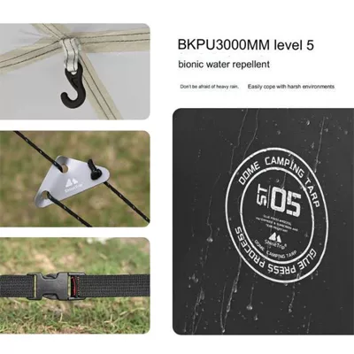 Made with a simple and sensual black color and dome-shaped tent, it can be used harmoniously anytime, anywhere It has a structure that anyone can easily install with only 3 poles (1 front pole + 2 inner tent poles) without complicated installation. The full ground sheet that blocks cold air and moisture extends all the way to the front room, providing a more spacious living space through efficient space utilization.