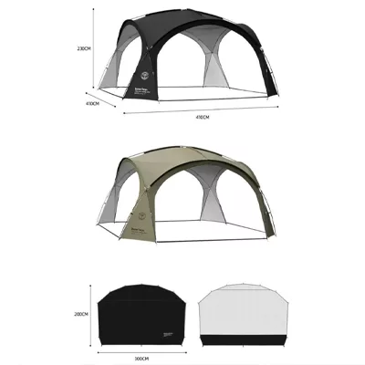 Naturehike Village 13 Tent Titanium Black This item only can be purchased in our retail store. The price is RM1999. ◆New titanium black gel sunscreen technology ◆Integrated tent pole, easy to set up ◆Effectively blocks 99.9% of UV rays ◆Waterproof coating PU2000, windproof and rainproof ◆Five veil window design, breathable and bright ◆There is a USB light strip inside the tent to create a beautiful atmosphere ◆The foyer can be opened and closed freely *Due to the light bar design inside the tent, it is not recommended to use it on rainy days* Specifications: Expanded size:395x270x183cm Storage size:110x25x30cm Weight: Approximately 22kg including accessories Material: Fly tent-150D titanium black rubber Oxford cloth, waterproof 2000mm Inner tent-300D polyester Oxford cloth, nylon mesh Contents: External tent x1, inner tent x1, 170cm door pole x3, floor nails x31, wind rope x3 (others have been tied to the tent), curtain x1, straps x, storage bag x1