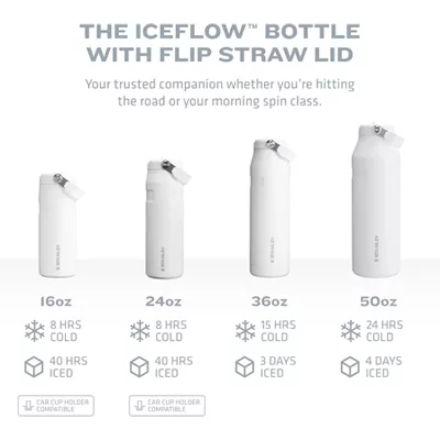 Next level hydration. The 24-ounce IceFlow Flip Straw 2.0 Bottle has premium AeroLight™ technology that makes it 33% lighter than standard stainless-steel bottles. Featherweight spun-steel insulation keeps your water ice-cold for hours. The folding handle makes this the perfect grab and go for your next barre class.