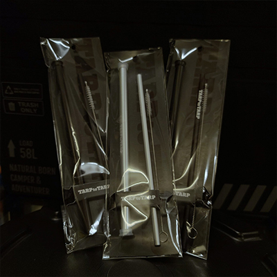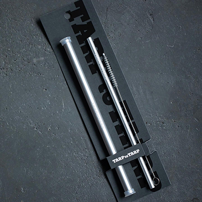 Instead of plastic straws, we use aluminum straws made in Tsubame City, Niigata Prefecture for TARPtoTARP drinks.