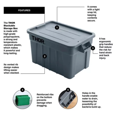 2.5L Mini THOR Stackable Storage Box with Lid. A compact box that is easy to use for storing small items. It can also be used to store small gears, spices, stationery, tools, and etc. Food grade material too!