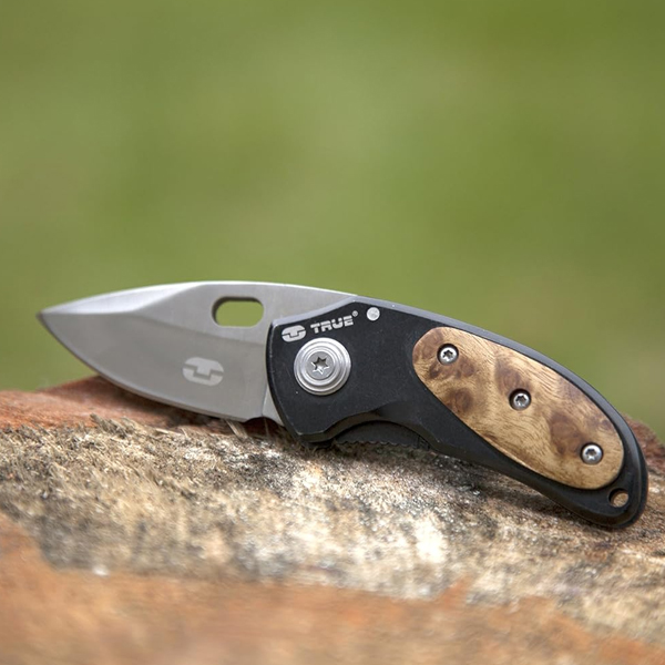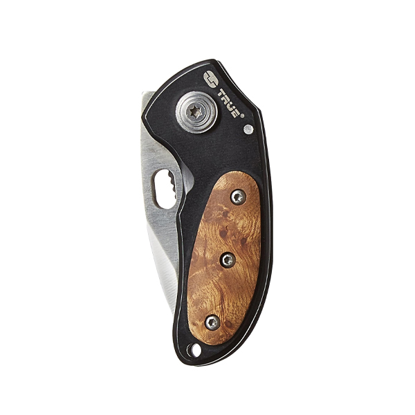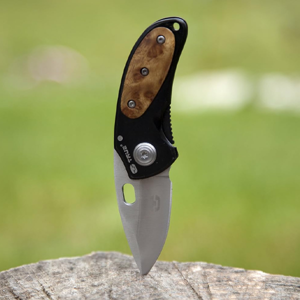 With its mahogany wooden handle insert and its fine sandblasted 420 grade stainless steel folding blade; this knife has a quality like no other.