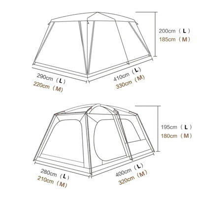 Outer tent size (approximately) 330*220*185cm